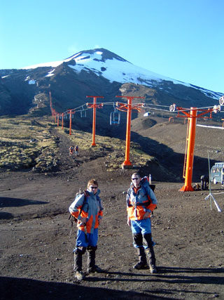 | John and Heath ready to walk from the bottom, unlike the cheats who took the chair lift, Volcan Villarrica | Viv, John and Kaye |