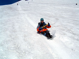 | Heath sliding down | Heath sits upon our luggage awaiting our bus |